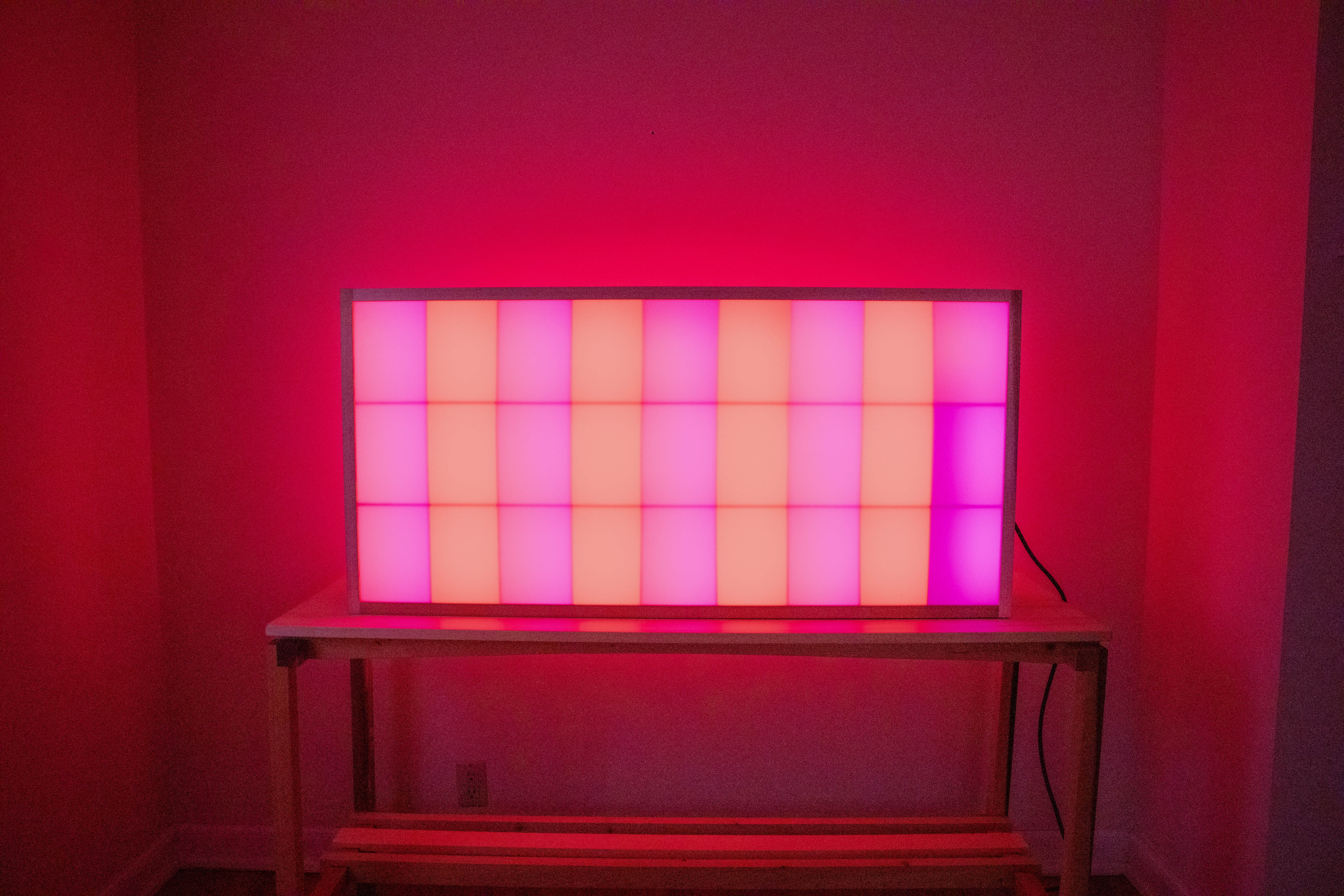 ︎︎︎Sunset ShuttersThe shutters my mom scavenged, and I put them to good use. Behind the shutters is a wooden window frame, softened by opaque white acrylic that hides LEDs that shift sunset colors from the inside.