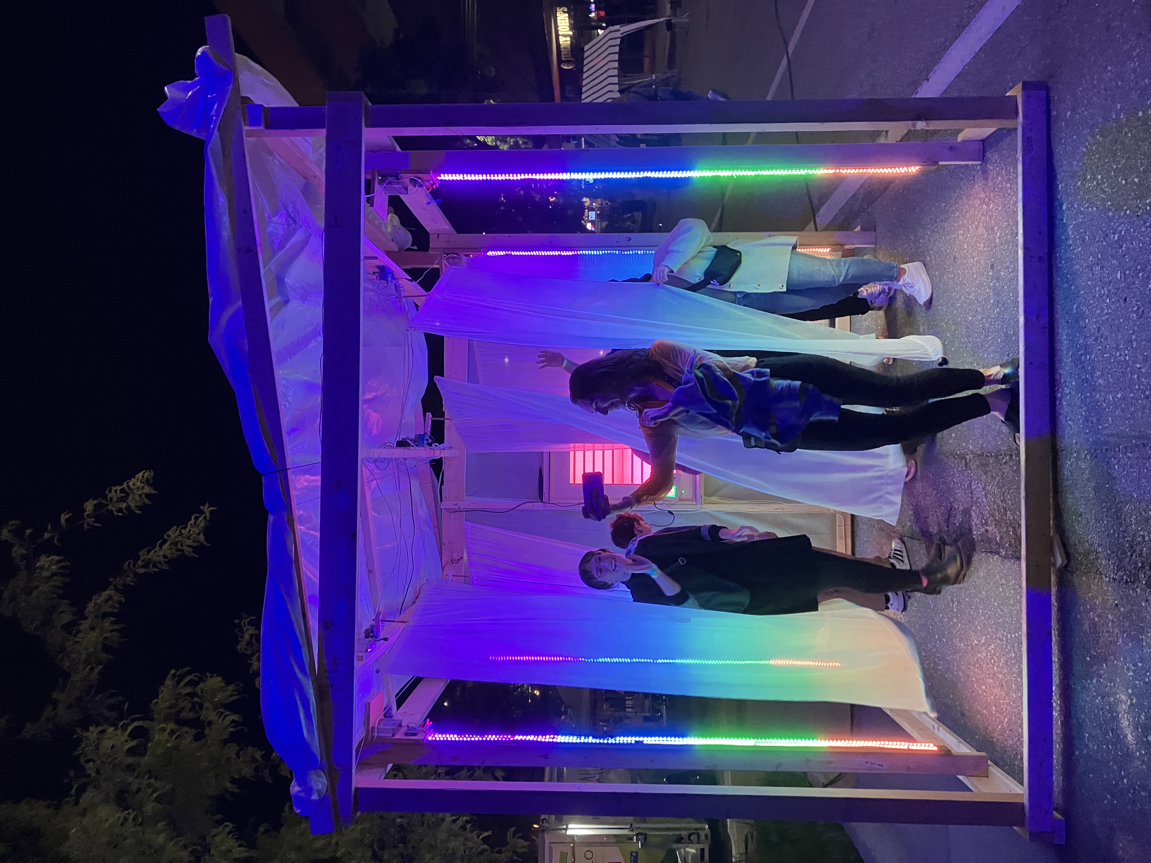 Sunset Pavilion is part of Midnight Prairie, an immersive environment I created for the music festival Lincoln Calling. I used wooden frame-like structures, white curtains, LED strip light, and various electronics to set the scene of a sunset pavilion on a wind-struck plain. The installation was located at the entrance of Lincoln Calling at 14th and O Street.